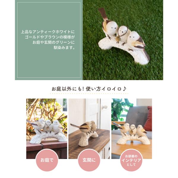 シマエナガ グッズ ガーデニング オーナメント おしゃれ 置物 庭 小鳥 アニマル ガーデン オブジェ かわいい ホワイト 白 庭 玄関 北欧 アンティーク ナチュラル