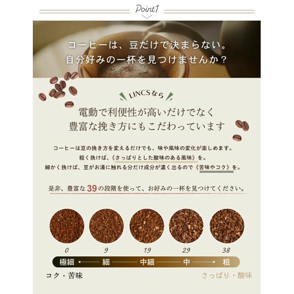特典付き♪ワンランク上の美味しさ ONESECOND コーヒーミル 電動 ステンレス 臼式 洗える 38段階 タッチ コニカル式 自動停止 電動コーヒーミル ギフト リンクス
