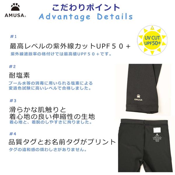 高品質高機能の男女兼用レギンスです。最高レベルの紫外線カットUPF50+。耐塩素素材なのも安心。サイズも豊富。XXSの子供サイズからLLの大人サイズまで。品質タグとお名前タグがプリントなのも、着心地が良くて快適。海の学校や海遊び、川遊びに最適です。付き添いママのサイズもあるのでお揃いで用意できて便利。日差しが気になる季節に、普段使いも出来て使い勝手抜群。別売りのマリンシューズと合わせて用意すれば、海や川のレジャーのお出かけ準備完璧です!関連キーワード男女兼用 大人サイズ 男の子 女の子 キッズ ジュニア110cm 120cm 130cm 140cm 150cm 160cm 170cm 小学校 中学校 授業 スクール水着 黒 ブラック キャンプ 海遊び 川遊び 学校指定 水泳教室 水泳大会 競泳 スポーツ競技 プール 体型カバー 高品質 高機能 抗菌防臭 UPF50+ 紫外線カット 日焼け防止 水着 プール スクール 水着 スポーツブランド ラッシュガード 日焼け UVカット 入学準備。こちらのページは(2) S・Mサイズの販売ページになります。