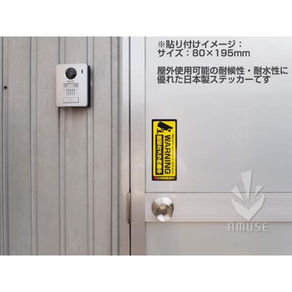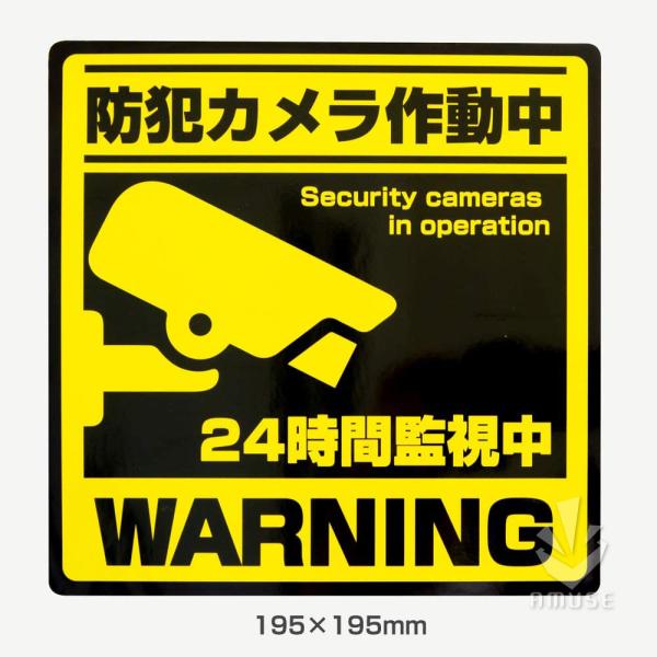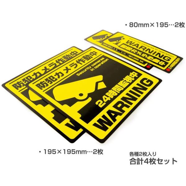 防犯ステッカー 防犯カメラ シール【耐候・防水 日本製】 防犯カメラ作動中 シール (195×195mm,80mm×195) 2サイズ各2枚入り、 計4枚セット
