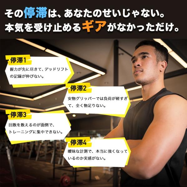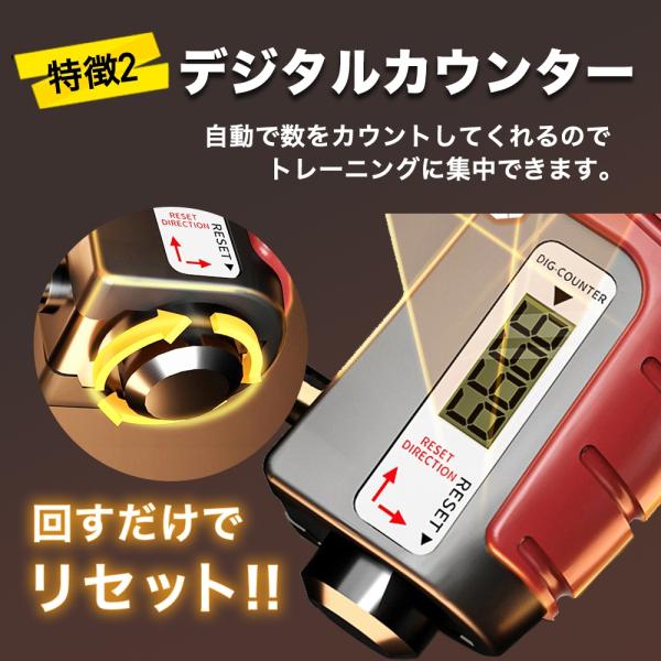 そんなあなたを強力にサポート。従来の「回数を数えるのが面倒」「強度が物足りない」「手が痛くなる」悩みをすべて解消<br><br>