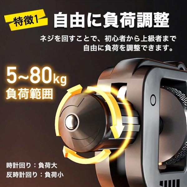 リハビリレベルの5kgからプロレベルの80kgまで、ダイヤルで無段階に調整可能<br><br>