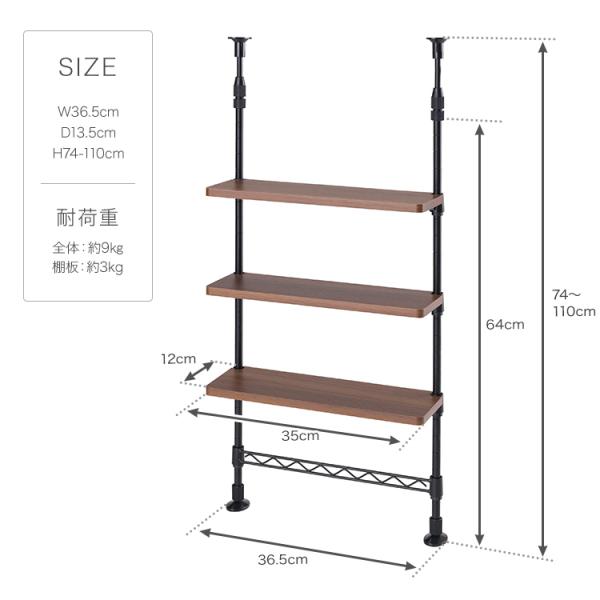 サイズ(約):[外寸] 幅35.5×奥行13.5×高さ74〜110cm [棚板] 34×12cm