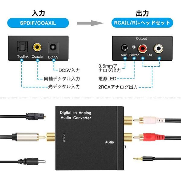 DACデジタル 光と同軸 から アナログ RCA 3.5mmジャック オーディオコンバーター rca コンバーター 光&同軸デジタル変換 T