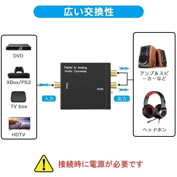 【オーディオ変換器】デジタル信号からアナログ信号へ変換するオーディオコンバーターです。光、同軸(デジタル)から入力された音声信号をRCA(アナログ)および3.5mmジャック(ヘッドフォン)に変換します。