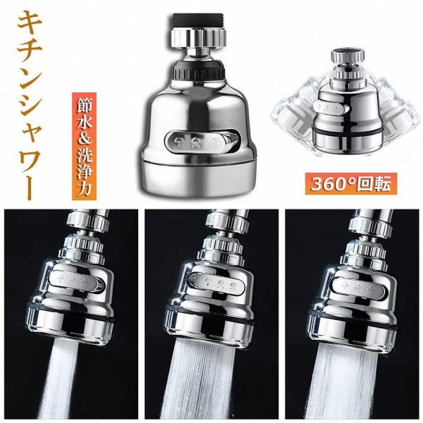 キッチンシャワーヘッド 蛇口シャワー 蛇口に取り付けるだけ 節水 ノズル 首振り 3つモード 台所 360度回転 切り替え 流し 水道 水栓 360 送料無料