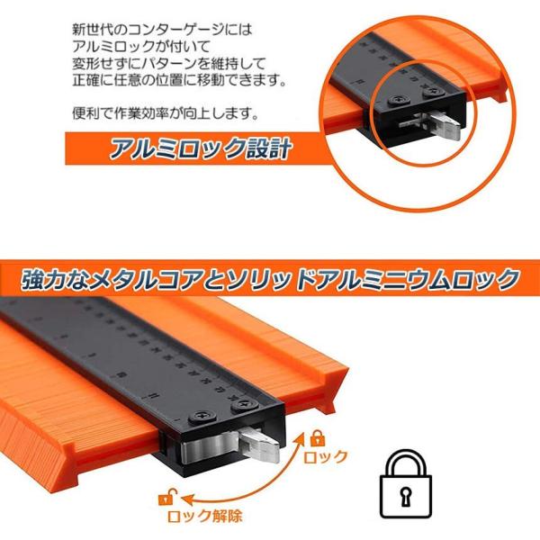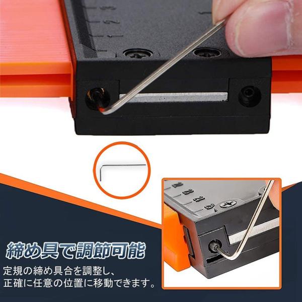 【調整可能&ロック機能】本かたどりゲージは、ニーズに応じて締め付けを調整することができます。一定期間輪郭定規を使用した後、簡単に締め付けを調整することができます。オブジェクトが輪郭を描いたら、毎回完璧なトレースのために輪郭ゲージの歯を所定の位置にロックします。
