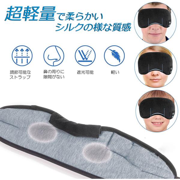 アイマスク スリープアイマスク スリープマスク睡眠アイマスク ヘッドホン 一体型 グレー Bluetooth 5.0 ワイヤレス 無線 USB充電式