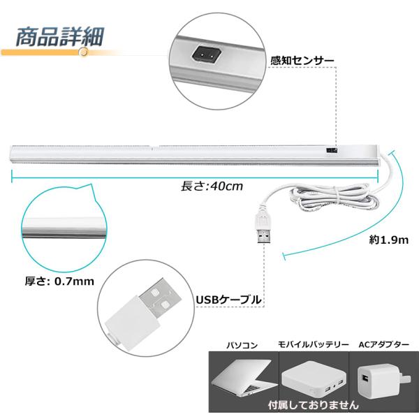 人感センサーライト キッチンライト フットライト LEDバーライト センサーライト 40cm 昼白色 バーライト タッチレス センサーライト 非接触