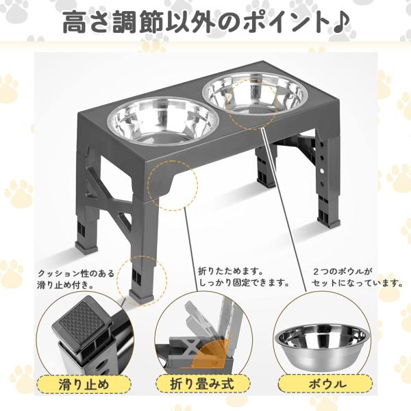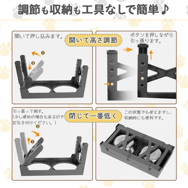 犬用食器台 ペット用食器台 高さ調節 フードボウル ドッグボウル ペットボウル 小型犬 中型犬 大型犬 子犬 ペット用食器 ステンレスボウル 折りたた