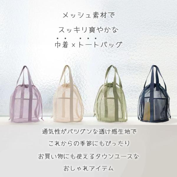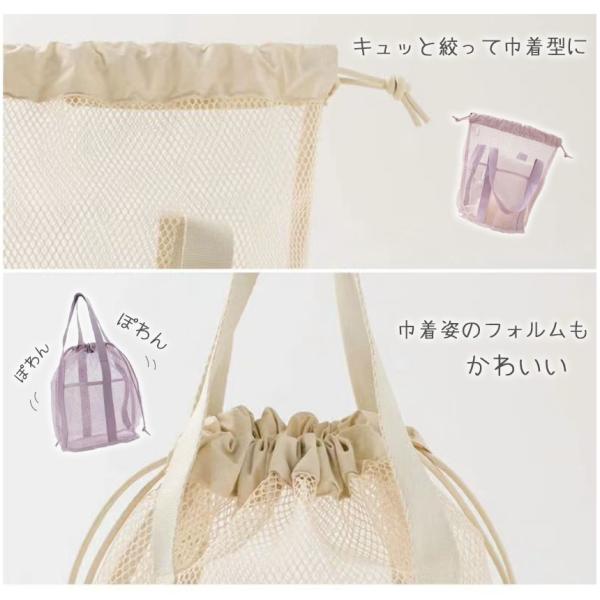 メッシュバッグ 4色選べる トートバッグ 巾着バッグ マチあ