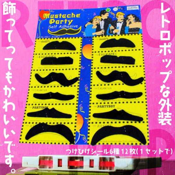 つけひげ シール 6種 1セット12枚 ハロウィン パーティー 仮装 コスプレ ネタ SNS映え 写真 子供 赤ちゃん ペット レトロ 笑える