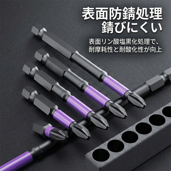 インパクトドライバー ビットセット 6本プロ仕様/S2合金鋼/硬度HRC60 なめない 折れない 驚異の同軸性 強力マグネット プラスビット 電動ドリ