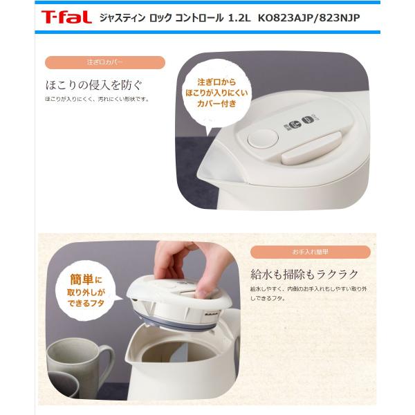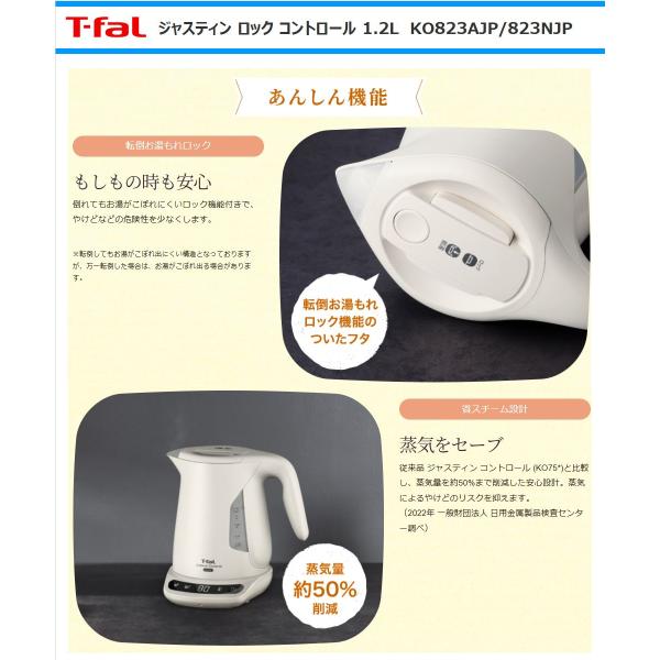 ティファール 電気ケトル KO823NJP ジャスティン ロック コントロール1.2L あんしん機能 8段階温度コントロールタイプ ブラック T-fal