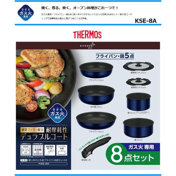 サーモス ガス火専用フライパンなべセット KSE-8A-DPBL 取っ手のとれるフライパン8点セット ディープブルー THERMOS