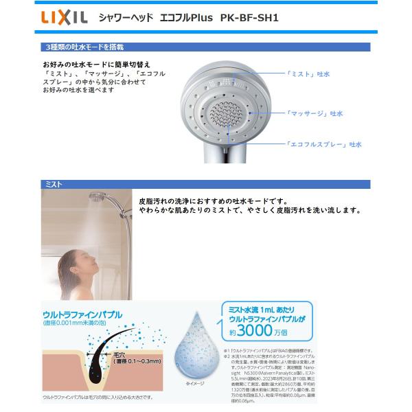LIXIL INAX シャワーヘッド PK-BF-SH1 エコフルPlus 多機能シャワーヘッド ウルトラファインバブル 3種類吐水モード切替え リクシル