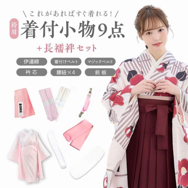 袴用 着付け 10点 セット 二尺袖 着付け小物セット 小学生 ジュニア 女の子 大学生 卒業式 和装 訪問着 下着 フォーマル ショート丈 女性 長襦袢 送料無料