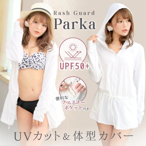 ラッシュガード レディース 長袖 ロング丈 日焼け防止 UVカット ホワイト 白 S M L 体型カバー 腰紐付き UPF50+ 紫外線対策 速乾性 海 プール 旅行 水陸両用