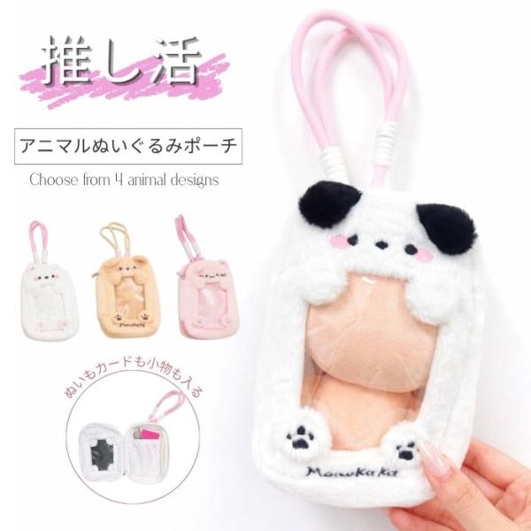 アニマルポーチ 推し活 ぬいポーチ 推しぬい ぬいぐるみポーチ ぬい活 ストラップ 推しポーチ 持ち運び アニマル ふわふわ 犬 いぬ ねこ くま