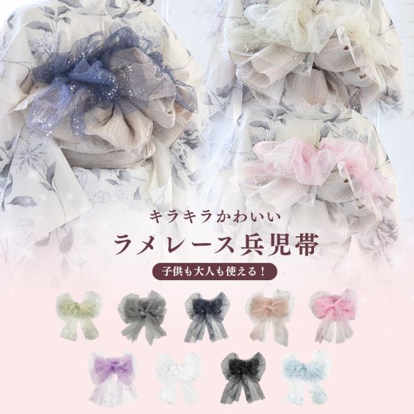 レディース ラメレース兵児帯 ラメ兵児帯 帯単品 かわいい おしゃれ 花火大会 ホワイト ピンク ベビーピンク ネイビー グレー パープル ライトブルー ブラック