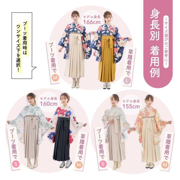※袴は着付けで約5cm調整可能です。アンダーバスト約100cmまで対応可能で、横幅は紐の締め具合で調整できます。