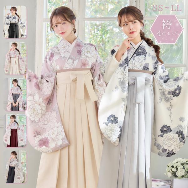 袴 4点セット 袴セット 卒業式 大学生 小学生 二尺袖 着物 和装 レディース モノトーン 黒 グレー ピンク ベージュ 白 アイボリー SS S M L LL 無地袴 送料無料