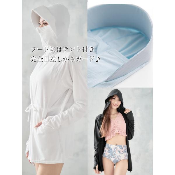 ラッシュガード フェイスガード付き ロング 長袖 涼感 UV加工 レディース 体型カバー 指穴付き UVカット 日焼け防止 プール 水着 マスク ポケット付き 無地