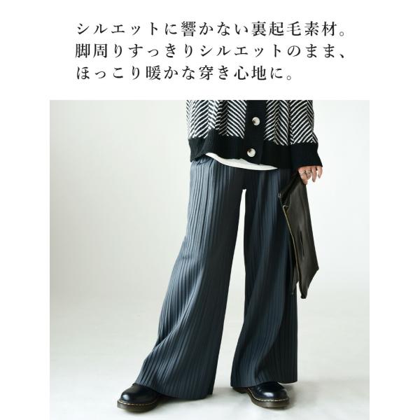 パンツ 裏起毛 プリーツ パンツ レディース 秋冬 50代 40代 30代 20代 体型カバー