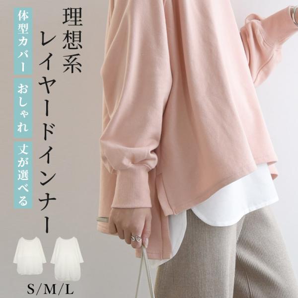 インナー レディース 選べる レイヤードインナー トップス 切り替えシャツ 七分袖 カットソー チュニック 体型カバー 白 おしゃれ