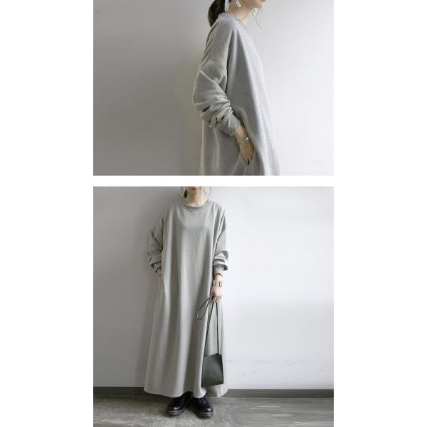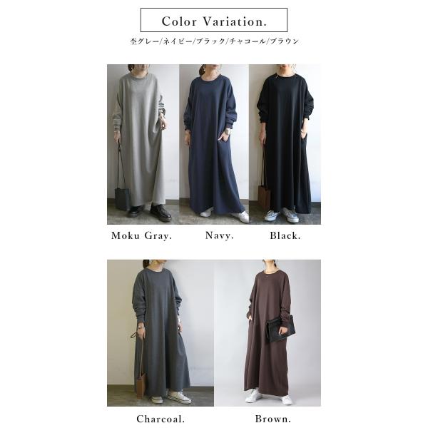 ワンピース レディース 裏起毛 長袖 体型カバー 冬 秋 ロング あったか 暖か マキシ 60代 50代 40代 30代 20代 無地 ゆったり スウェット 黒 おしゃれ