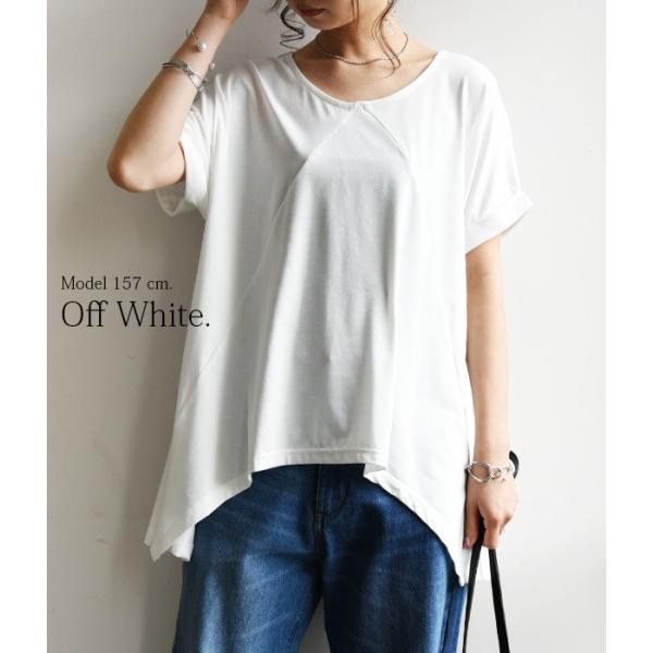 もちもちTシャツ イレギュラーヘムで印象的なおしゃれを確立!伸縮性抜群のもっちり生地がたまらない♪ tシャツ レディース 半袖 20代 30代 40代
