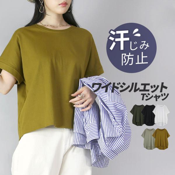 カットソー レディース 半袖 白 汗染み防止 綿 体型カバー 夏 コットン 無地 シンプル ワイド ゆったり 快適 春 60代 50代 40代 30代 20代 おしゃれ