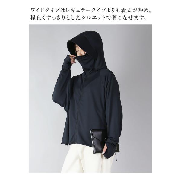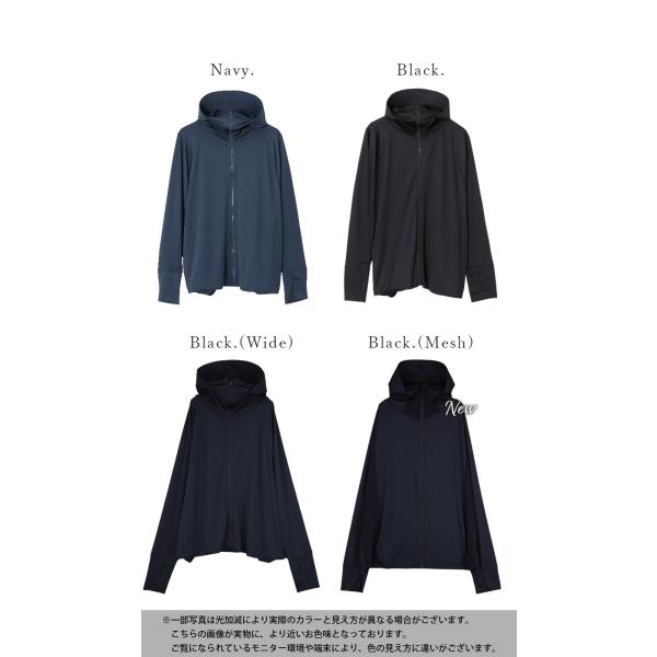 ひんやり接触冷感素材。つば付きフード・顔がしっかり隠れるハイネック・手の甲まで隠せる指穴付きで徹底的に紫外線対策ができるデザインです◎おしゃれなドルマンスリーブで着心地も楽ちん♪