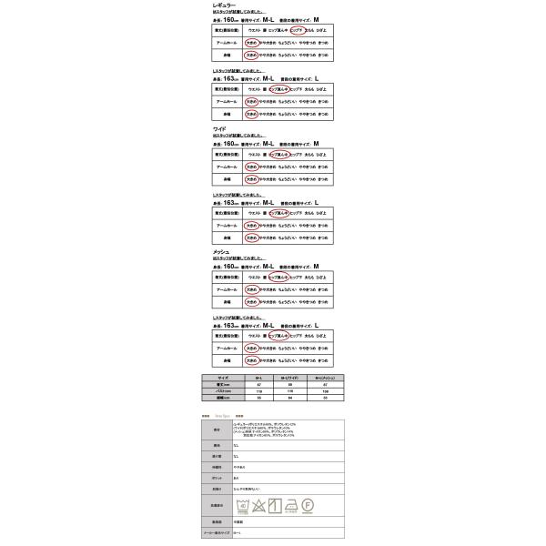 レギュラー:ポリエステル88%、ポリウレタン12%