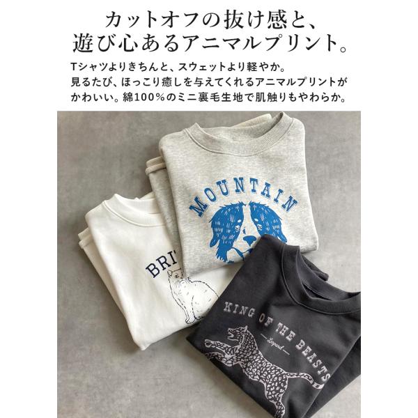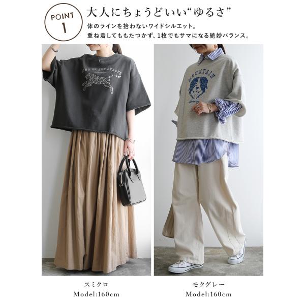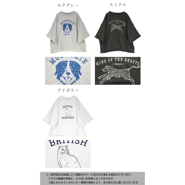 スウェット トレーナー 半袖 綿100% トップス カットソー 体型カバー コットン 春 夏 秋 黒 白 グレー 動物 柄 プリント 猫 犬 カジュアル おしゃれ