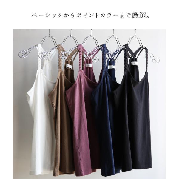 キャミソール インナー タンクトップ レディース 綿 夏 春 コットン 三つ編み クロス 白 黒 トップス 重ね着 おしゃれ
