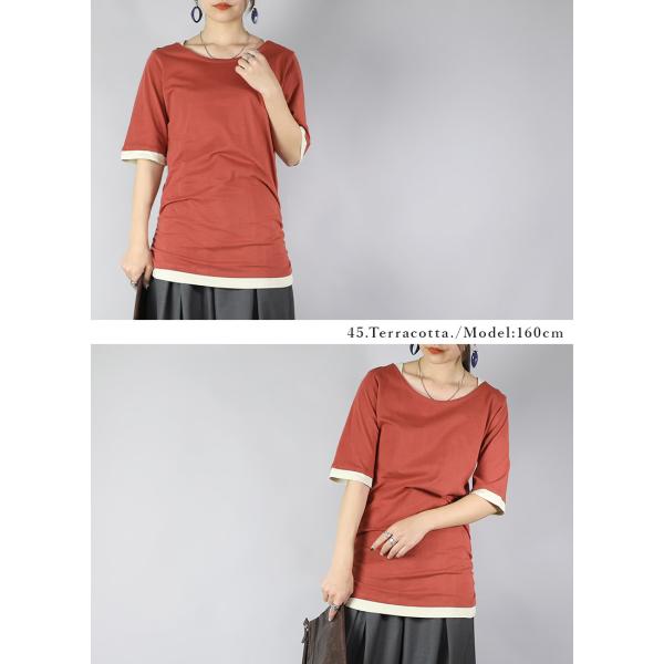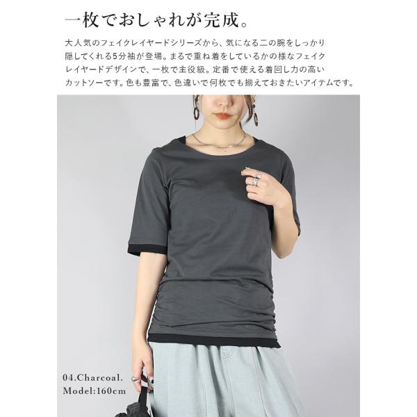 商品名:フェイクレイヤードくしゅくしゅシャーリング5分袖カットソー 20代 30代 40代