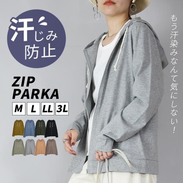パーカー レディース 薄手 長袖 綿 汗染み防止 羽織り トップス コットン 黒 体型カバー 大きいサイズ 春 夏 秋 フード ジップ 重ね着 おしゃれ