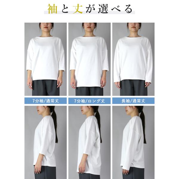 カットソー レディース 長袖 七分袖 ロング Tシャツ 春 秋 白 黒 無地 体型カバー トップス ボートネック 60代 50代 40代 30代 20代 おしゃれ