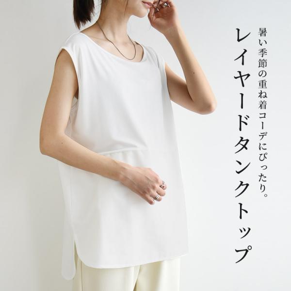 タンクトップ レディース 選べる レイヤードインナー カットソー ノースリーブ シャツ プルオーバー チュニック 白 春 夏 ブラウス おしゃれ