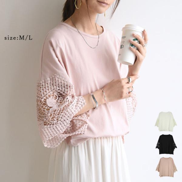 カットソー レディース 春夏 半袖 トップス Tシャツ ティーシャツ tシャツ レース 涼感 大人可愛い 二の腕カバー 20代 30代 40代 50代