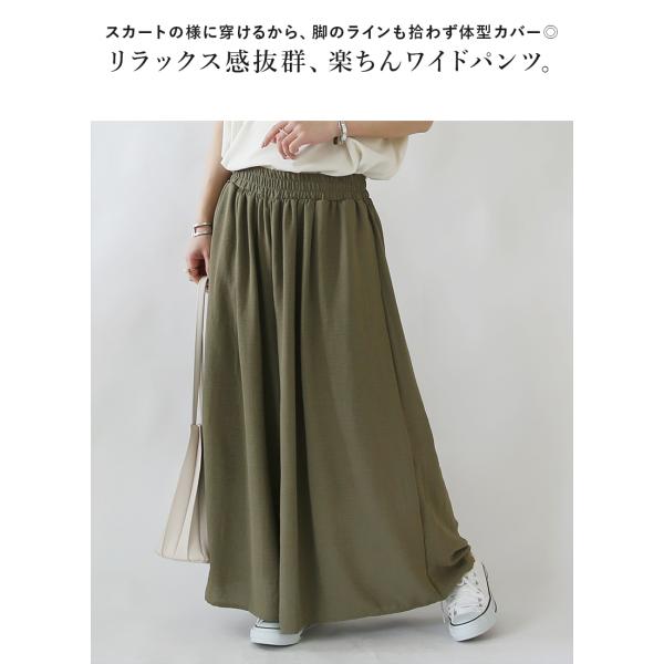 ガウチョパンツ レディース 夏 ロング ワイド パンツ ボトムス ゆったり 体型カバー 黒 ウエストゴム カジュアル 春 無地 リラックス おしゃれ
