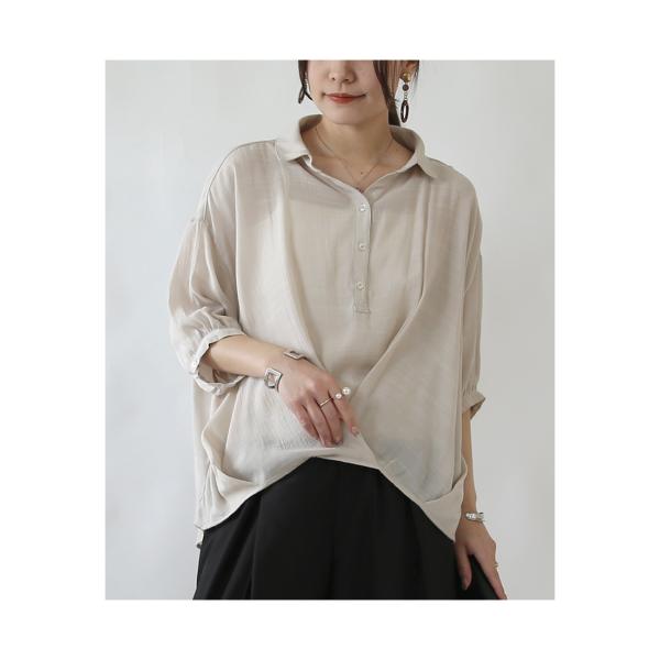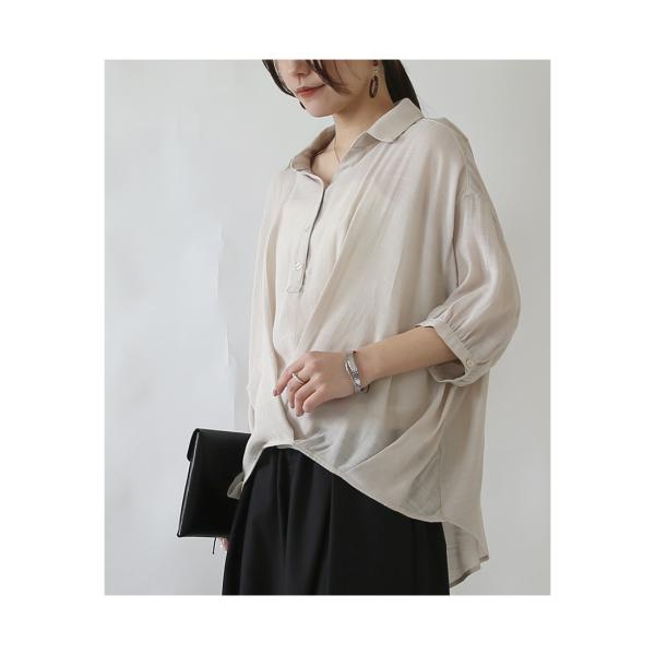 透け感のあるシアースラブが、涼しげで上品な雰囲気のブラウス。裾タックデザインが、体のラインを拾わない美シルエットを演出します。
