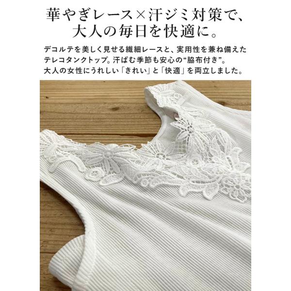 タンクトップ レディース レース トップス インナー 白 黒 フラワー 花 春 夏 秋 冬 伸縮性 きれいめ 汗染み対策 重ね着 レイヤード おしゃれ