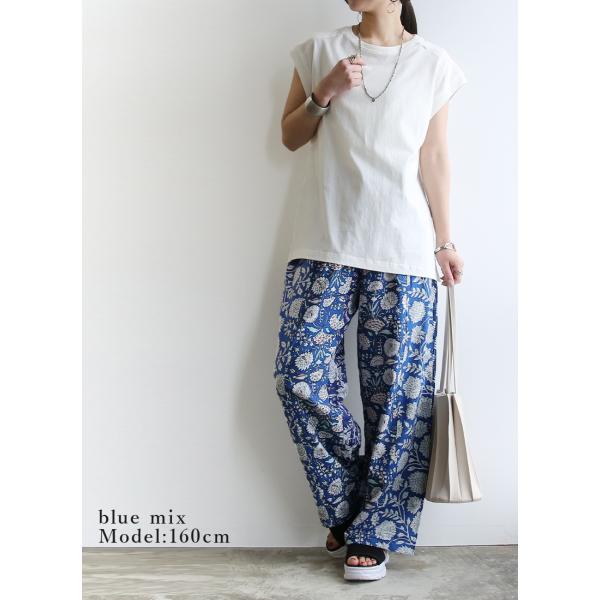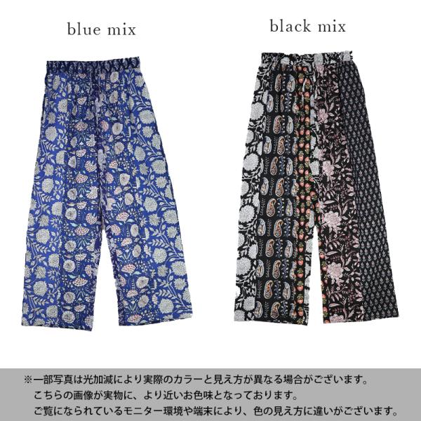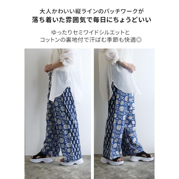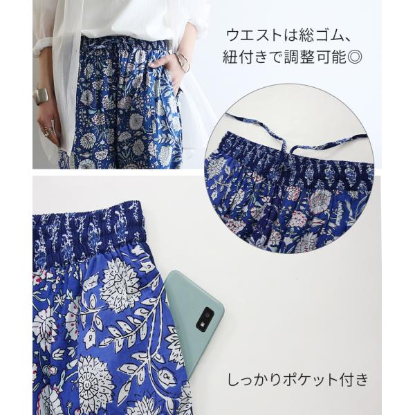 ワイドパンツ レディース 綿 インド綿 ボトムス コットン 春 夏 裏地 花柄 ボタニカル ゆったり 涼しい 涼感 ポケット ロング おしゃれ