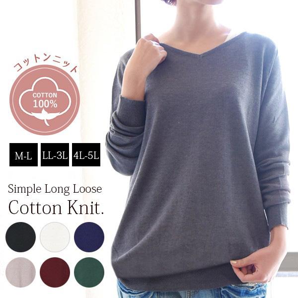 綿ニット レディース コットン Vネック トップス 長袖 プルオーバー セーター 50代 40代 30代 20代 大きいサイズ おしゃれ