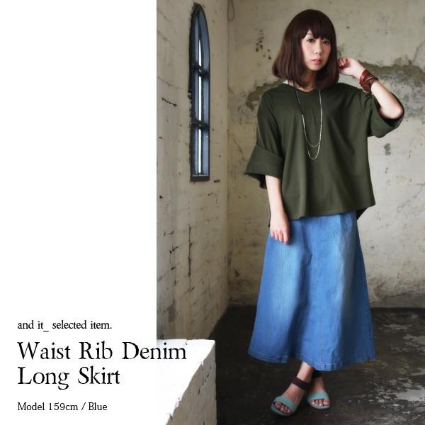 デニムスカート コーデ ロング 60代 50代 40代 30代 20代 体型カバー レディース ジーンズ ボトムス ウエストゴム 春 夏 秋 冬 おしゃれ
