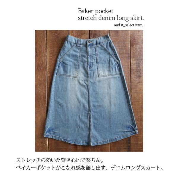商品名:ベイカーポケットストレッチデニムロングスカート
