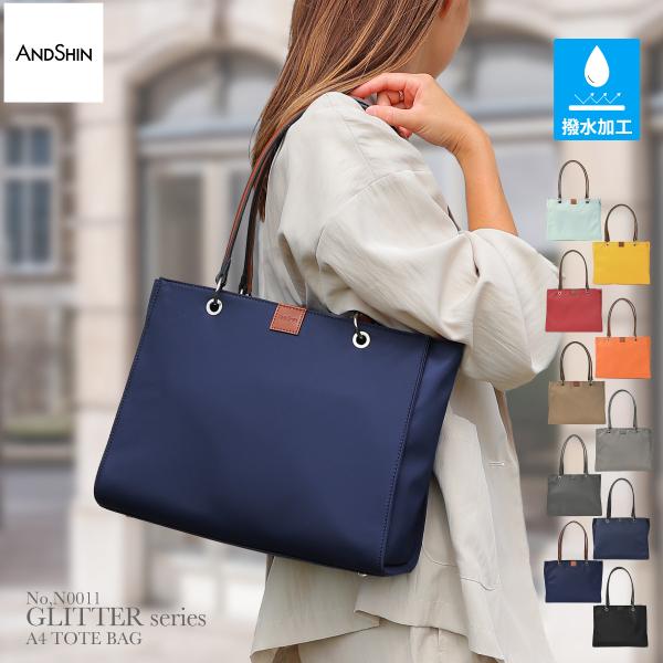 ANDSHIN公式 撥水ナイロン トートバッグ レディース 通勤バッグ 大容量 軽量 a4 軽い 軽量 ビジネス セレモニー シンプル アンドシン グリッターシリーズ