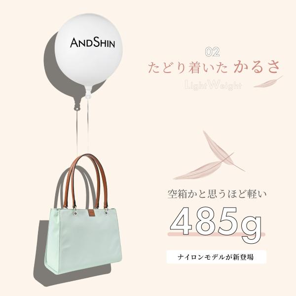 ANDSHIN公式 軽くて自立 撥水ナイロン トートバッグ レディース 軽い a4 バッグ 通勤 大きめ 通勤バッグ 軽量 大容量 自立 仕事用バッグ ファスナー